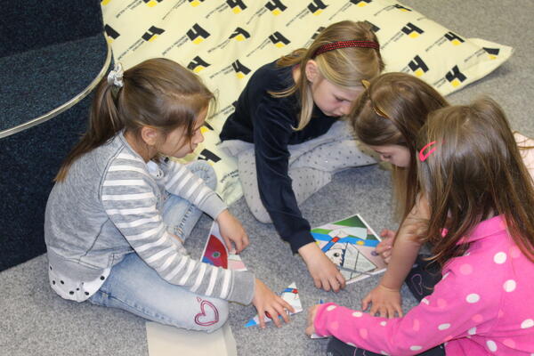 Březen – měsíc čtenářů jsme zakončili pohádkovou knihovnickou lekcí pro prvňáčky ZŠ Hulín. Hlavním tématem se stal Večerníček a jeho nejznámější pohádky. Děti jsme seznámili s historií Večerníčka, prozkoumali jsme, kdo se ještě na něj dívá, jaké večerníčky děti znají a která postavička je známá i ve světě. Nechybělo ani pár zajímavostí – krteček ve vesmíru, planeta jménem Večerníček či 3 NEJ o Večerníčkovi. Kromě povídání jsme děti i trochu vyzkoušeli. Jelikož se blíží jaro, tak pomáhaly krtečkovi zasadit kytičku a skládaly podle obrázku večerníčkovu písničku. Měsíc čtenářů jsme nemohli ukončit lépe. Děkujeme všem třem třídám za návštěvu a budeme se brzy těšit na pasování čtenářů.