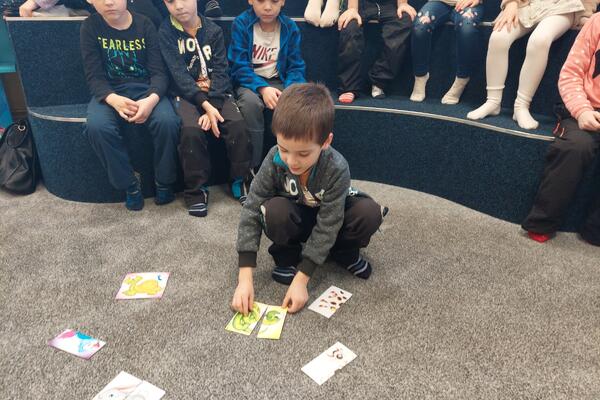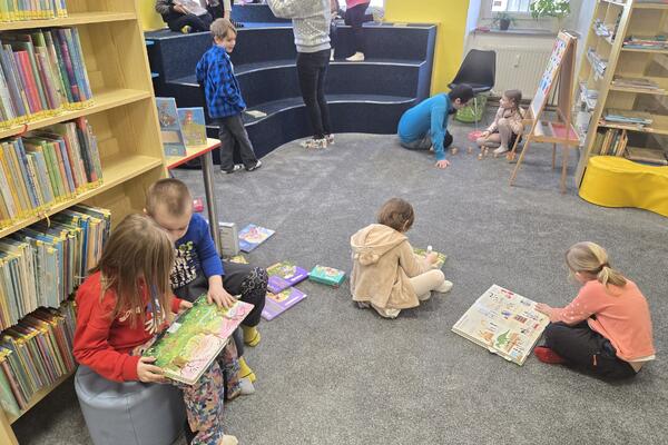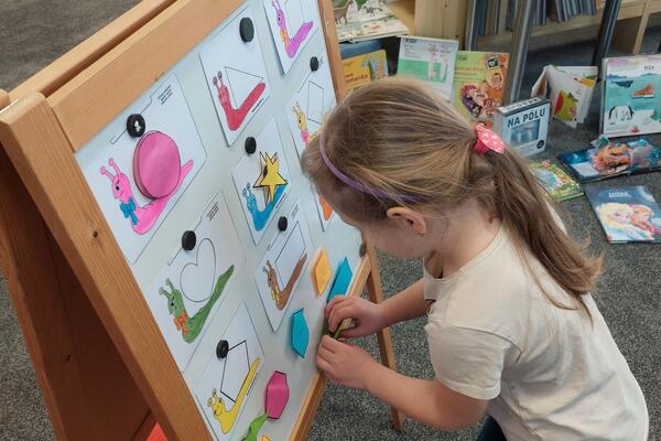 Vlk děti také prověřil v poznávání tvarů a zvířátek, ale nakonec nechyběl ani čas na objevování knihovny, hraní v dětském koutku a dokonce na