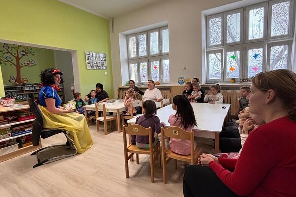 Paní knihovnice se proměnila ve Sněhurku a dětem předčítala známou pohádku Sněhurka a sedm trpaslíků. Nechybělo ani společné focení s malými posluchači, kteří se pak vydali na pohádkovou stezku plnou zábavných úkolů. Za