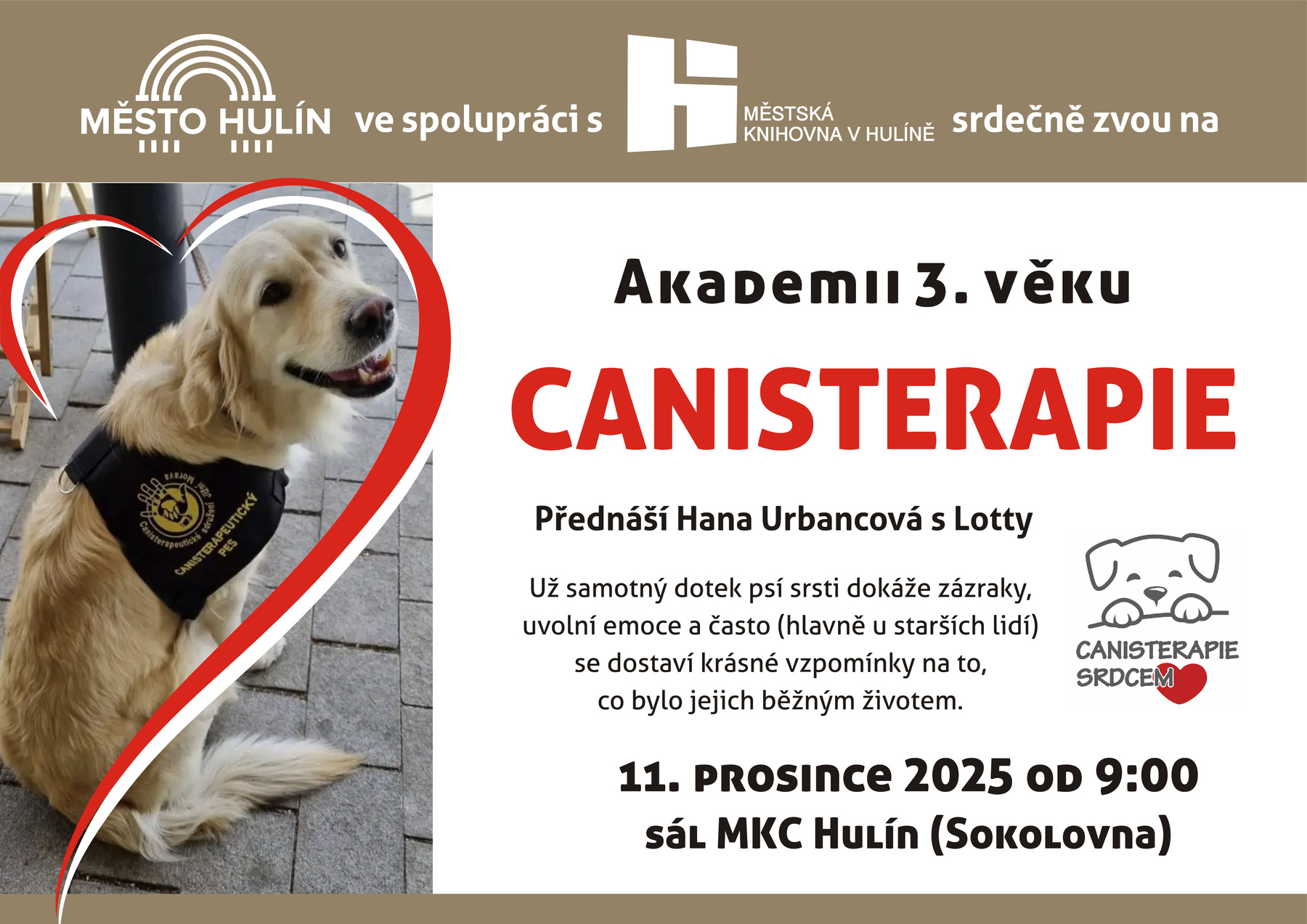 Město Hulín ve spolupráci MěK Hulín srdečně zvou na Akademii 3. věku, která se uskuteční 11. prosince 2025 od 9:00 v sále MKC Hulín.