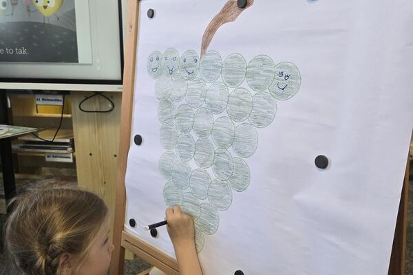 aktivita košík mrzutosti, při které děti sbíraly „zlobivé“ bobulky hroznového