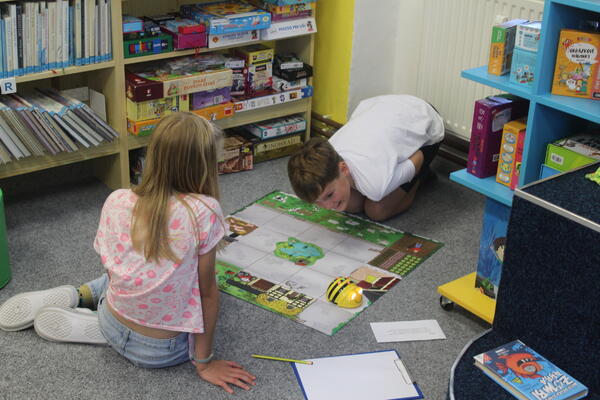 V úterý 6. září jsme zahájili knihovnické lekce v novém školním roce a hned ze začátku jsme uskutečnili netradiční a zároveň první digi-lekci. Z prvního patra sešli k nám do knihovny žáci ZŠ Active Learning a my jsme si na nich vyzkoušeli to, co jsme se přes prázdniny naučili. Žáky jsme seznámili se základy programování - za pomocí robotických včeliček a jedné dost neposedné zelené kuličky zapojily děti svoji paměť a prostorovou orientaci, kdy na různých podložkách musely robotovi nastavit správnou cestu do cíle. S neposednou kuličkou zase projet slalom tvořený z vyřazených knih a nakonec jsme se ještě podívali do virtuálního světa pomocí virtuální reality, kde si žáci vyzkoušeli, jak takový svět vypadá a jak to v něm funguje. První digi-lekce dopadla na výbornou a šlo vidět, že děti programování baví - vždyť naprogramovaly včeličky tak, že spolu tancovaly.