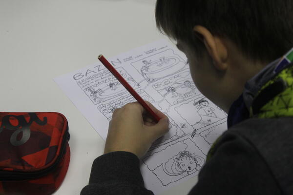 V rámci Týdne knihoven jsme pozvali do našeho přednáškového sálu žáky 5. tříd ZŠ Hulín na komiksový workshop, který si pro ně připravil pan Daniel Vydra. Děti se seznámily s komiksem jako takovým, dozvěděly se, co je jeho nezbytnou součástí a vyzkoušely si, jak se tvoří scénář ke komiksu. Každá skupina následně odprezentovala svoji vymyšlenou variantu komiksu a došlo i na velmi vtipné herecké zpracování jednoho krátkého stripu.