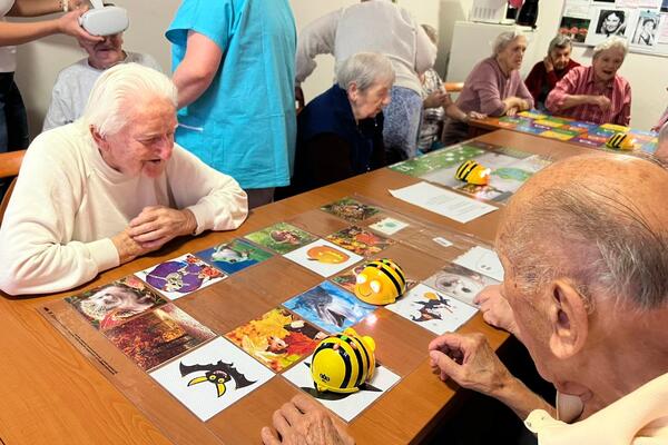 V úterý 18. října jsme přijali pozvání do Centra pro seniory v Holešově a seniory jsme seznámili s moderními technologiemi. Na ukázku jsme přivezli naše robotické včelky a brýle s virtuální realitou. Zpočátku se senioři zdráhali cokoliv si vyzkoušet a nedůvěra v nich převládala. Postupně však zjistili, že programování včelek není vůbec těžké a navíc je to velká zábava. Odvážnější si vyzkoušeli i virtuální realitu, konkrétně svět druhohor, kde se potkali tváří v tvář s dinosaury. Doufáme, že senioři s námi zažili zábavné i poučné dopoledne a že zjistili, že není třeba se nových technologií bát.