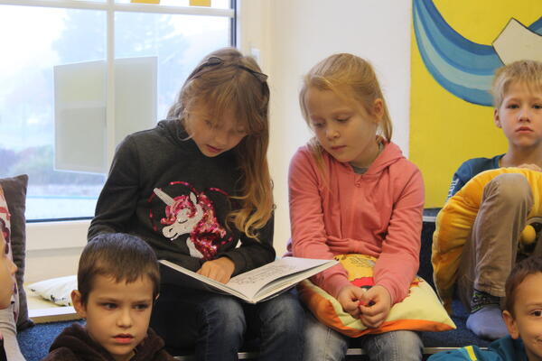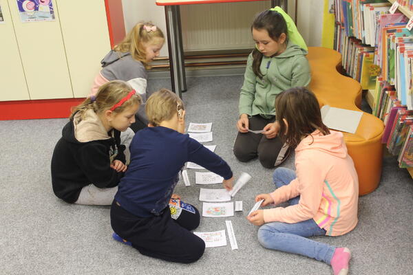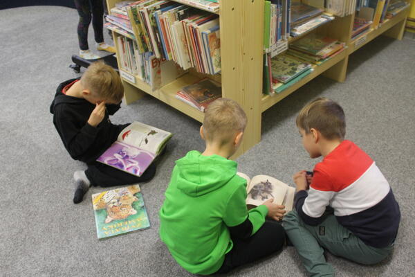V úterý 1. listopadu a ve čtvrtek 3. listopadu zavítali do naší knihovny žáci 2. tříd ZŠ Hulín. Tentokrát jsme si pro děti připravili povídání o známých zvířecích kamarádech Pejskovi a Kočičce. Nejprve jsme zjišťovali, zda děti vůbec knihu znají a jestli vědí názvy některých příhod. Pověděli jsme si i o jiných slavných knižních či filmových pejscích a kočičkách. Paní knihovnice pak měla v plánu přečíst dětem povídku Jak pejsek s kočičkou dělali k svátku dort, ale žáci ji velmi překvapili, když chtěli povídku přečíst sami. Společně jsme vzpomínali, co všechno do dortu Kočička s Pejskem dali. Pověděli jsme si také něco o zdravém a nezdravém jídle a nakonec žáci přiřazovali názvy příhod k obrázkům. Nechyběl ani čas na volné prohlížení ostatních knih. Moc děkujeme druhým třídám za návštěvu.