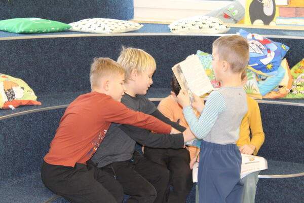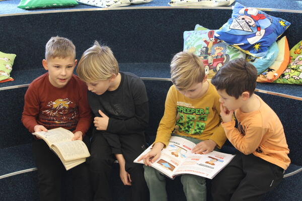 V předvánočním čase přišly za námi děti z družiny, abychom si společně povykládali o Vánocích, přečetli si krátký vánoční příběh a trochu si i zasoutěžili. Nechyběl ani čas na prohlížení knih.
