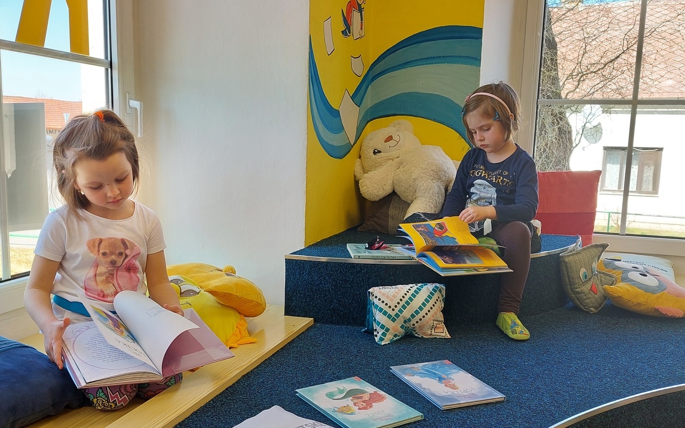 V pondělí dopoledne jsme měli výjimečně zavřeno kvůli odstávce elektřiny, ale to nám nezabránilo pozvat děti z anglické školky, která sídlí nad námi v budově, na malou návštěvu knihovny. Připravili jsem si pro děti zajímavé knížky, popovídali jsem si, přečetli jsme si pohádku o Velkém zlém vlkovi a nechyběl ani volný čas na hraní v dětském koutku a prohlížení knížek.