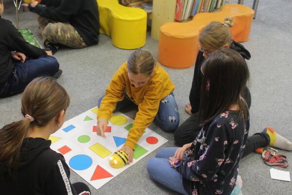 V knihovně vlastníme sadu robotických včelek, na kterých se děti naučí základům programovaní. Na různých podložkách plní přidělené úkoly a zlepšují si prostorovou orientaci a paměť. Jedná-li se o žáky staší 13 let, je možné do lekce zahrnout i seznámení s virtuální realitou.